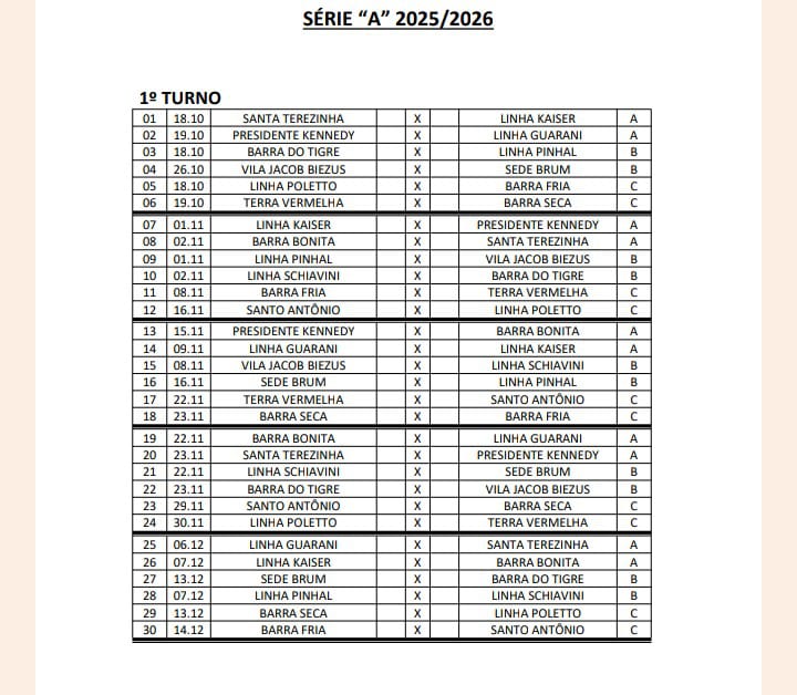 A tabela da primeira fase do Interiorano Série A foi divulgada pela Secretária de Desportos de Concórdia na manhã desta quinta-feira, dia 16. Neste final de semana tem a abertura da Série A.