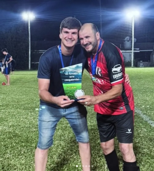 No time campeão Eduardo Grigolo foi o Técnico e o pai Leonir foi jogador.