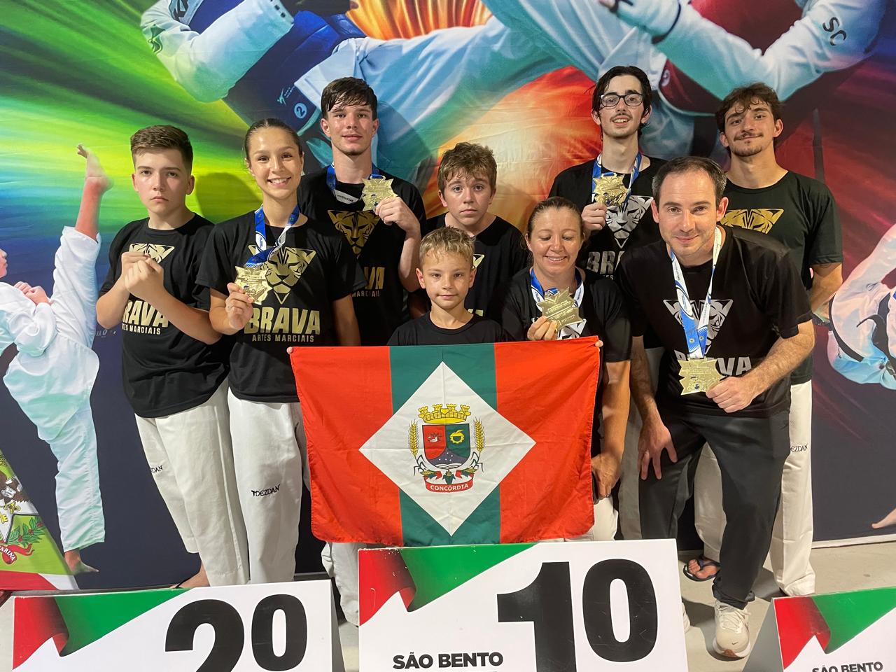 Equipe Acam/Sesport/Brava de Taekwondo representou o município de Concórdia na 1° Etapa do Campeonato Catarinense de Taekwondo que aconteceu nesse final de semana, na cidade de São Bento do Sul/SC. A equipe composta por 12 atletas e mais o Técnico Matheus Armando Stumpf, competiu nas categorias infantil, cadete, juvenil, adulto e máster na modalidade de luta faixas pretas e coloridas.